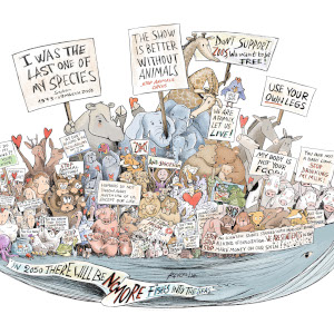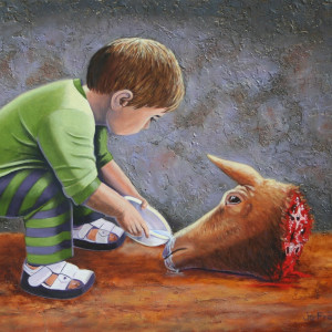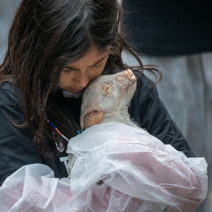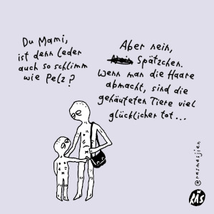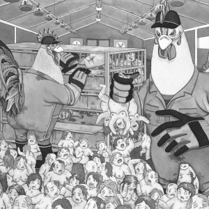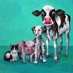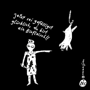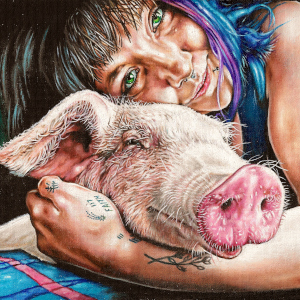 Ihre Werke machen die Lebensrealität von Tieren in der Tierindustrie sichtbar, beleuchten speziesistische Haltungen und Handlungen, erdenken eine Rollenumkehr der Tier-Mensch-Beziehungen, erzählen von einem empathischen, respektvollen Zusammenleben oder zeichnen utopische Ideen eines dauerhaften, heilen Miteinanders von Menschen und anderen Tieren.