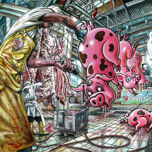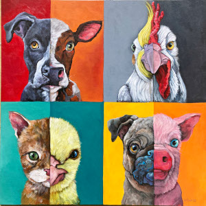 Gezeigt werden Beiträge von über 20 internationalen Künstler:innen, die mit unterschiedlichsten Medien arbeiten – von Fotografie über Malerei, Grafik, Illustration, Performance, Bildhauerei bis zu Graffiti und digitaler Kunst. Allen gemeinsam ist ihr Einsatz für die Rechte nichtmenschlicher Tiere über ihre künstlerische Arbeit.